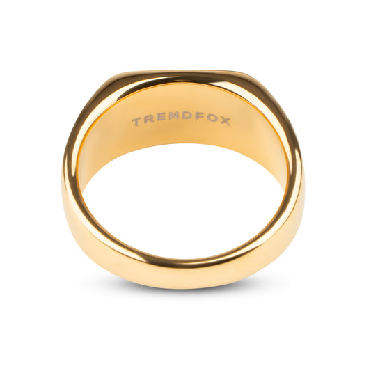 Zegelring met Zwarte Steen - Goud Kleurig - Staal