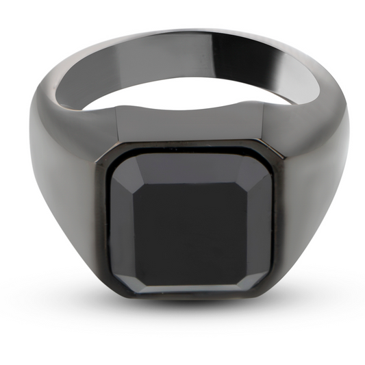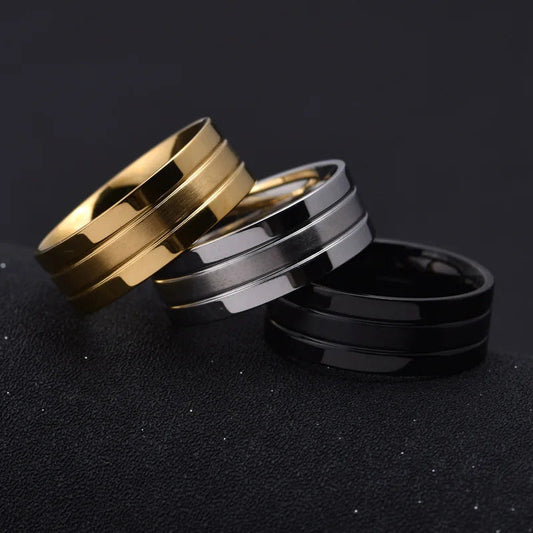 Minimalist Ring met Dubbele Streep - Zwart - Staal