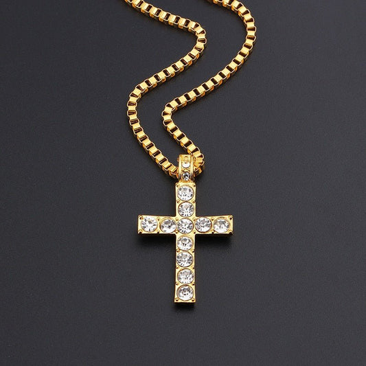 Ketting met Kruis Hanger Ingelegd met Steentjes - Goud Kleurig