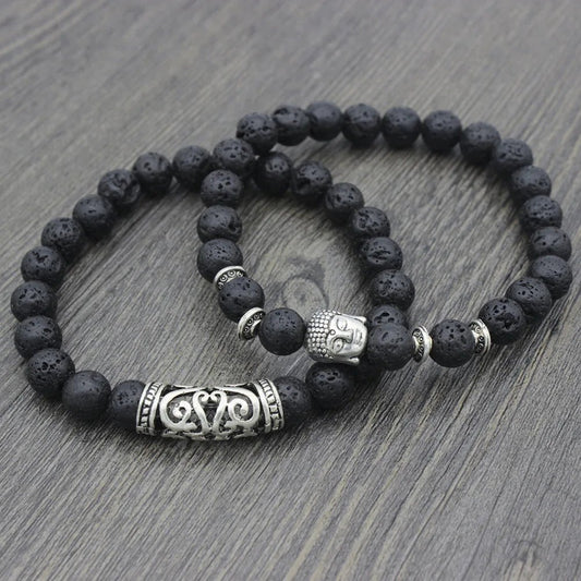 Kralen Armband met Buddha Beeld - Lava