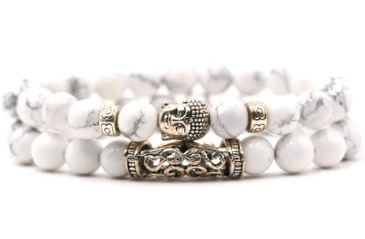 Kralen Armband met Buddha Beeld - Wit Marmer
