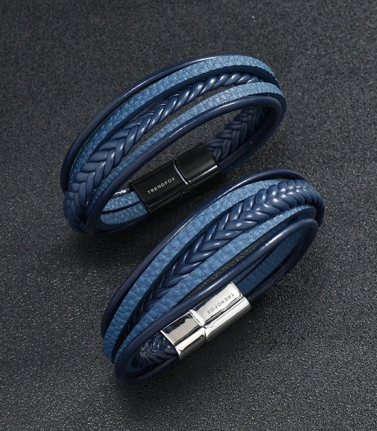 Leren Armband met Vlecht - Blauw met Zilver Kleurige Sluiting