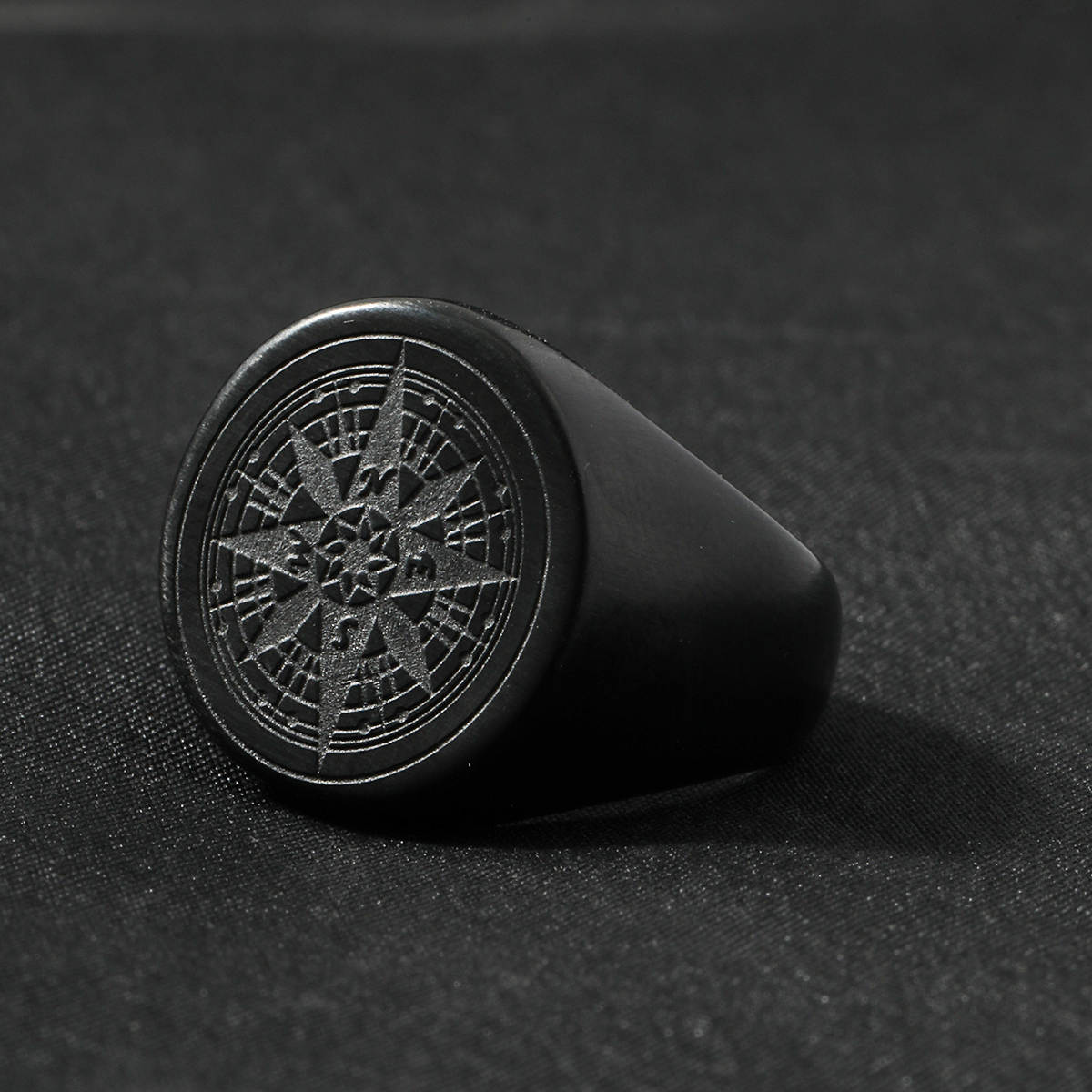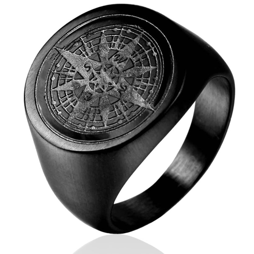 Kompas Zegelring - Zwart - Staal
