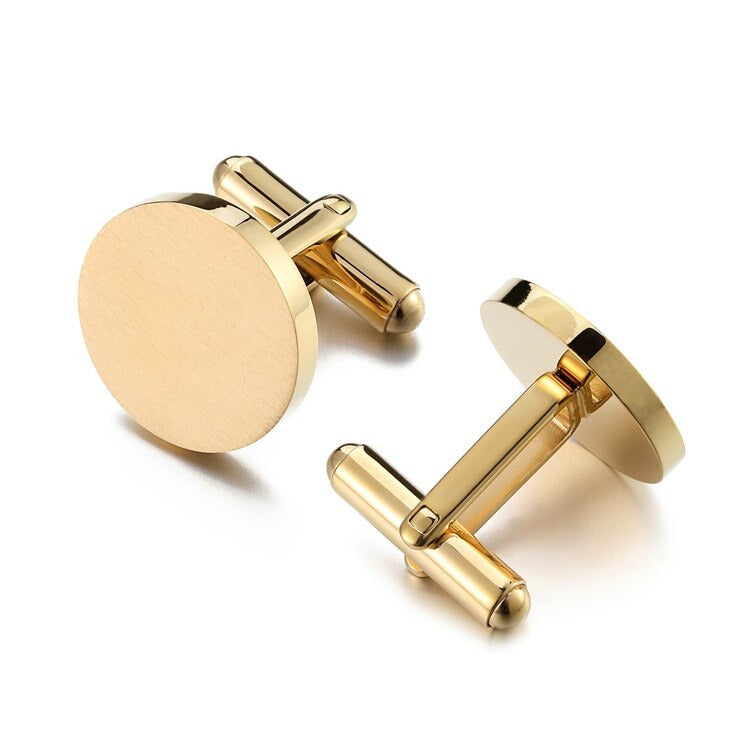 Ronde manchetknopen gemaakt van roestvrij staal met gepolijste oppervlakte - goud kleurig.