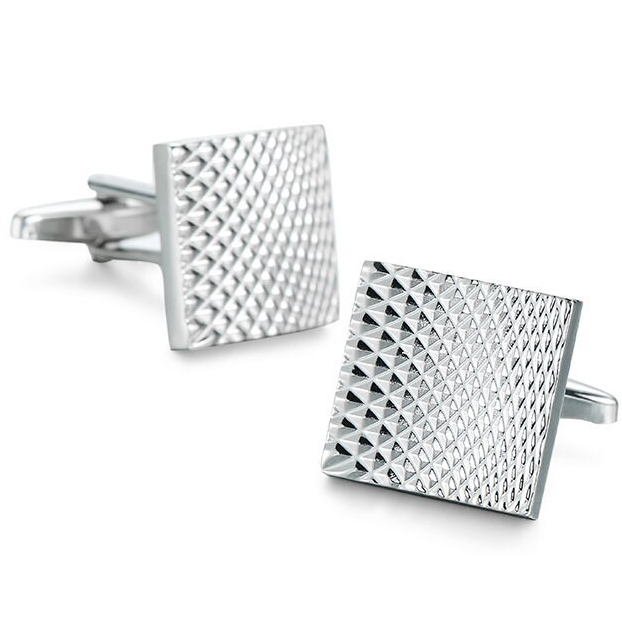 Vierkante manchetknopen gemaakt van roestvrij staal met gekartelde oppervlakte - zilver kleurig.