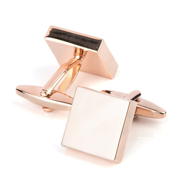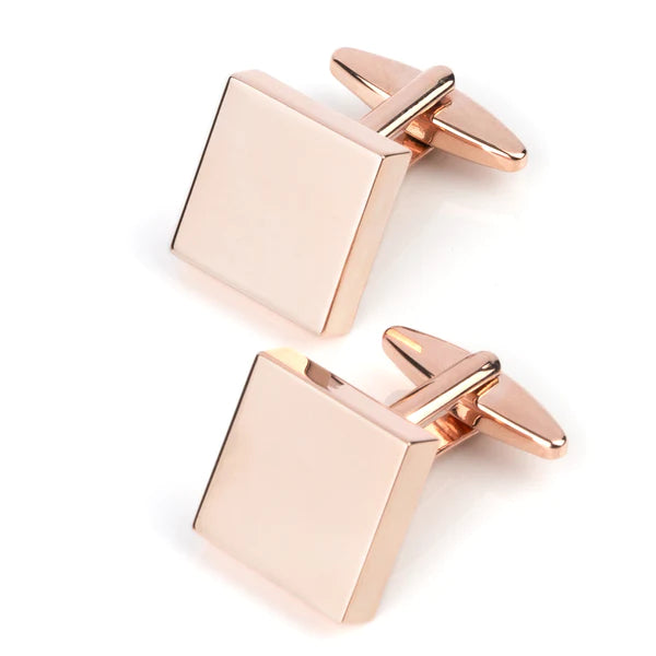 Vierkante manchetknopen gemaakt van roestvrij staal met gepolijste oppervlakte - rosé goud kleurig.