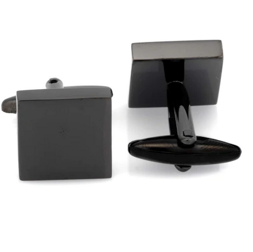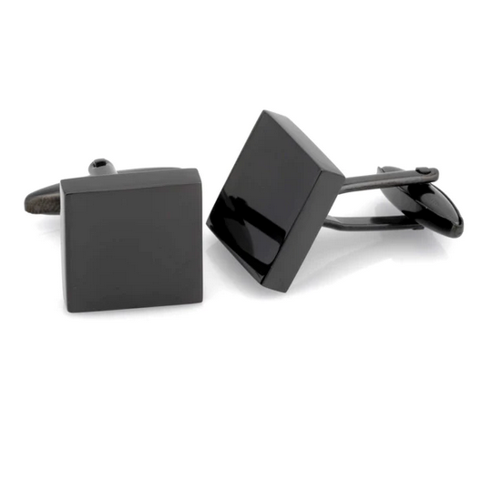 Vierkante manchetknopen gemaakt van roestvrij staal met gepolijste oppervlakte - zwart.