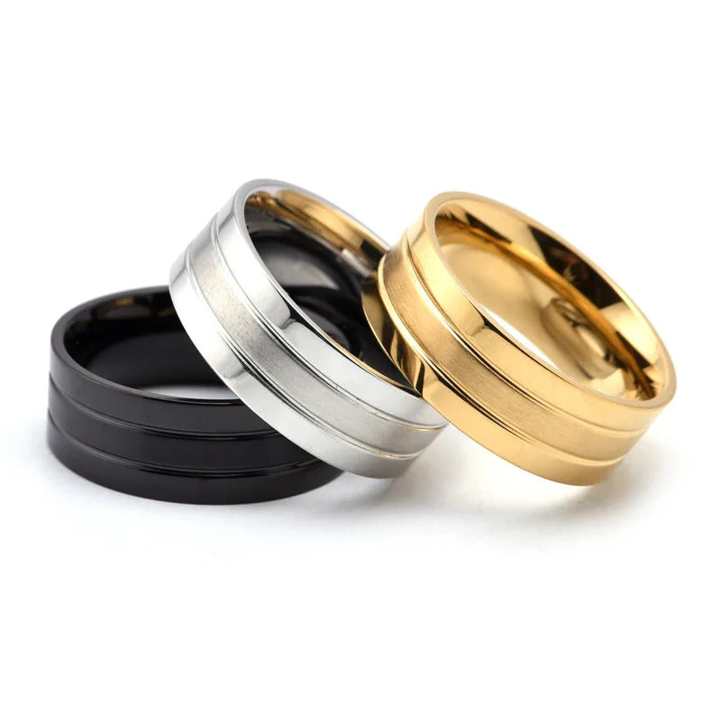 Minimalist Ring met Dubbele Streep - Zwart - Staal