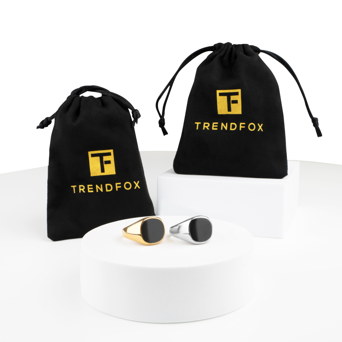 Deze klassieke zegelring voor heren is voorzien van een strak afgevlakte zwarte steen voor een sjieke, tijdloze uitstraling. De stalen constructie is goud kleurig uitgevoerd en zal z'n glans niet zal verliezen. Onder de steen vind je aan de binnenkant van de ring het TrendFox logo, haarscherp gegraveerd met een laser. De perfecte accessoire voor de echte gentleman!
