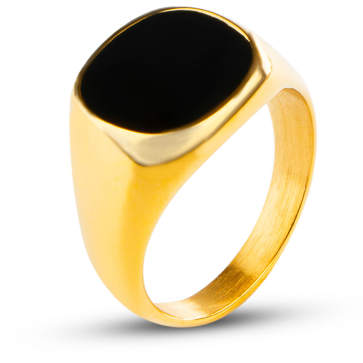 Zegelring met Zwarte Steen - Goud Kleurig - Staal