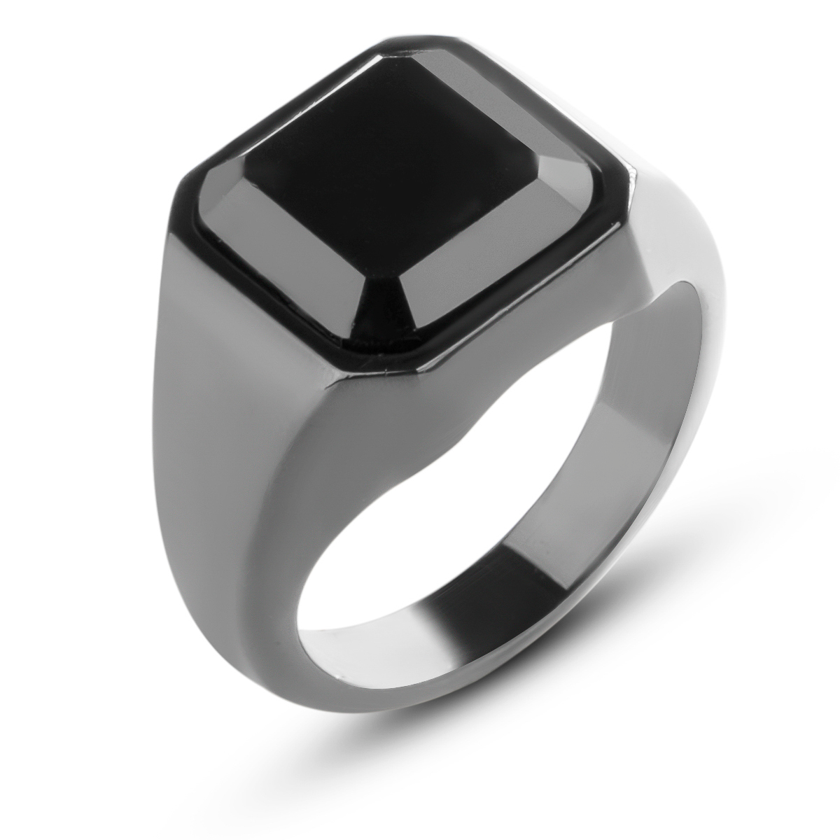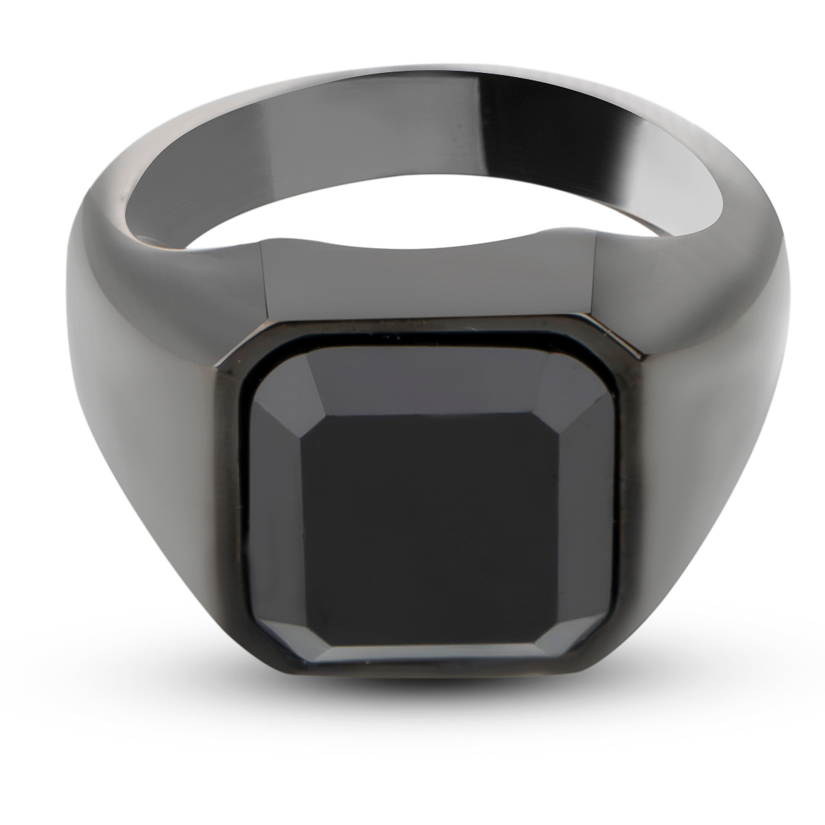 Zegelring met Zwarte Steen - Zwart - Staal